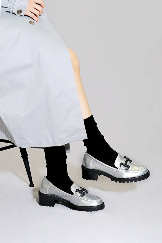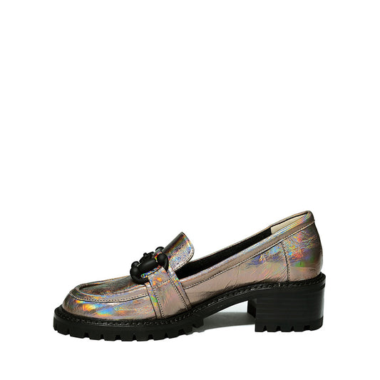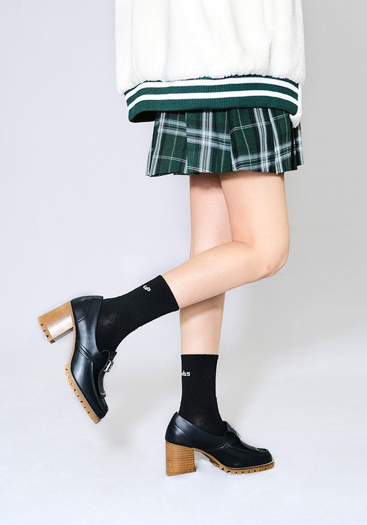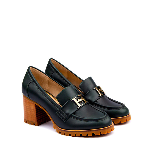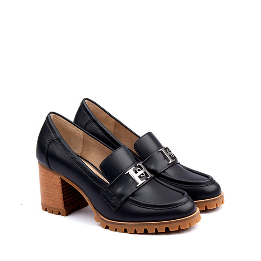 Elegant Black Leather Loafers with 7.5cm Chunky Heel