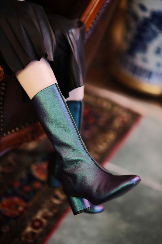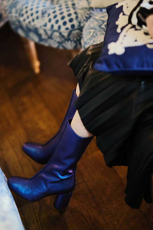 SATURN BLUE MATALLIC MID-CALF ZIP BOOTS